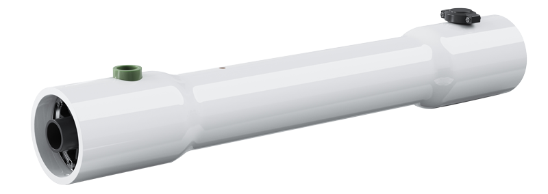 Fiberglass shell, Fluororubber/EPDM sealing, Duplex stainless steel SS2507 interface, Thermoplastic end caps